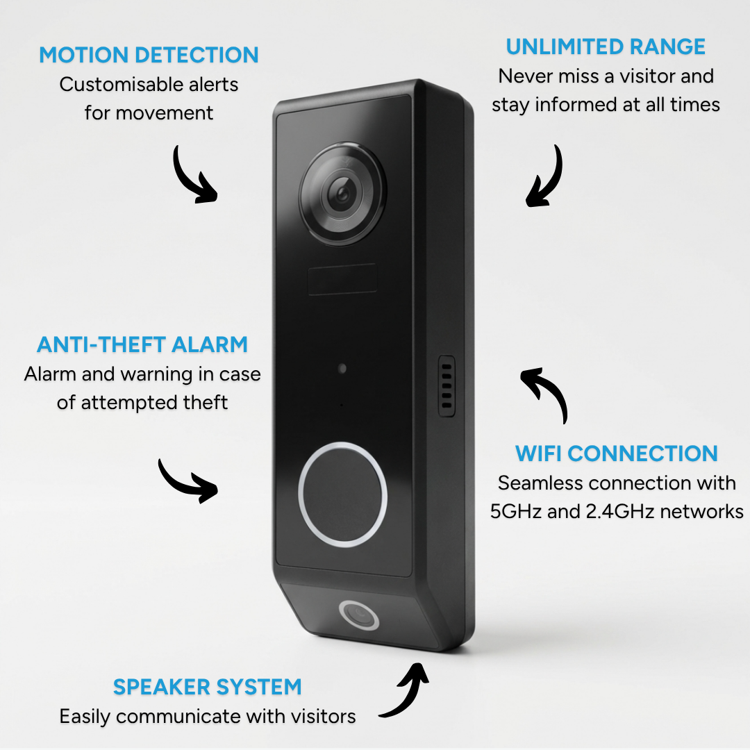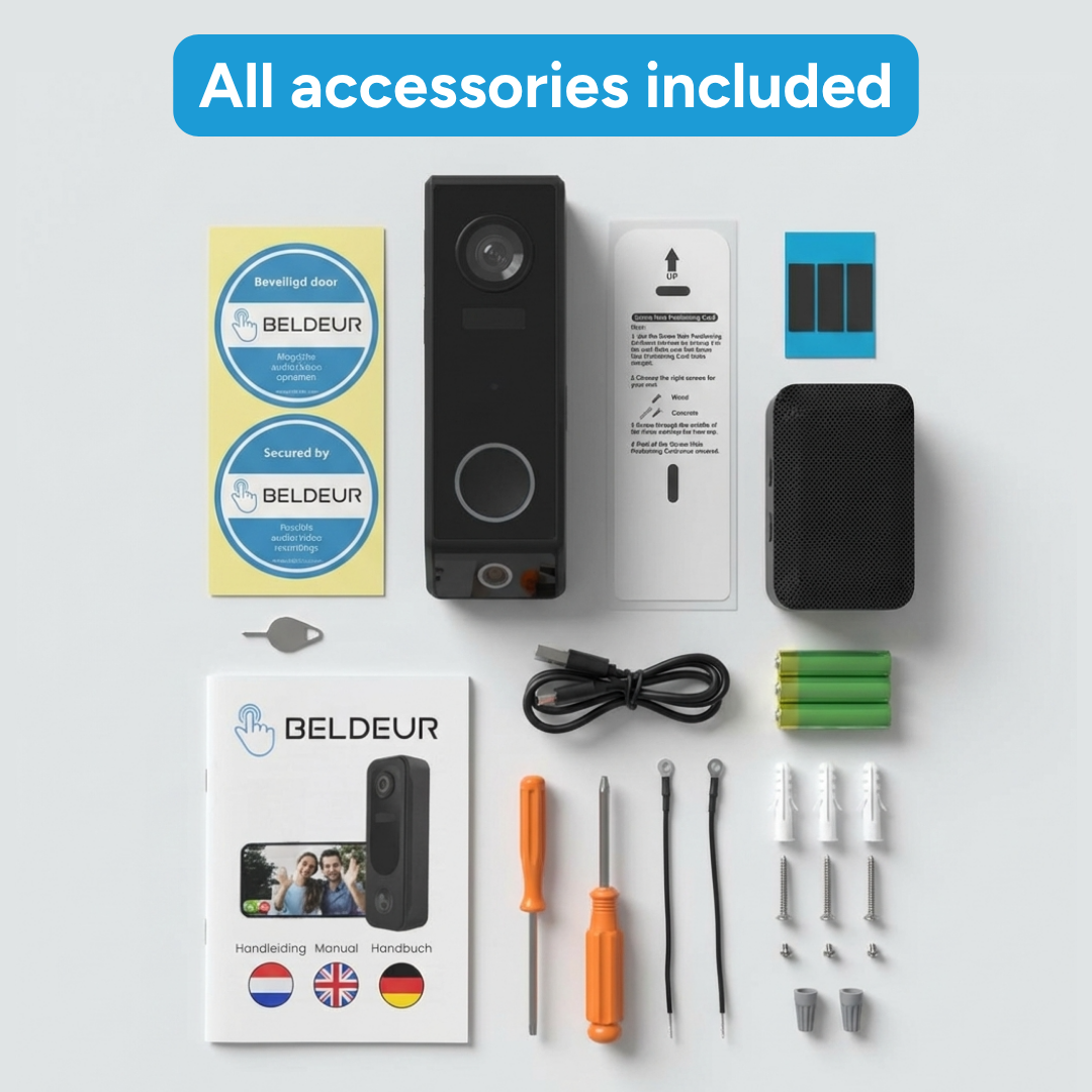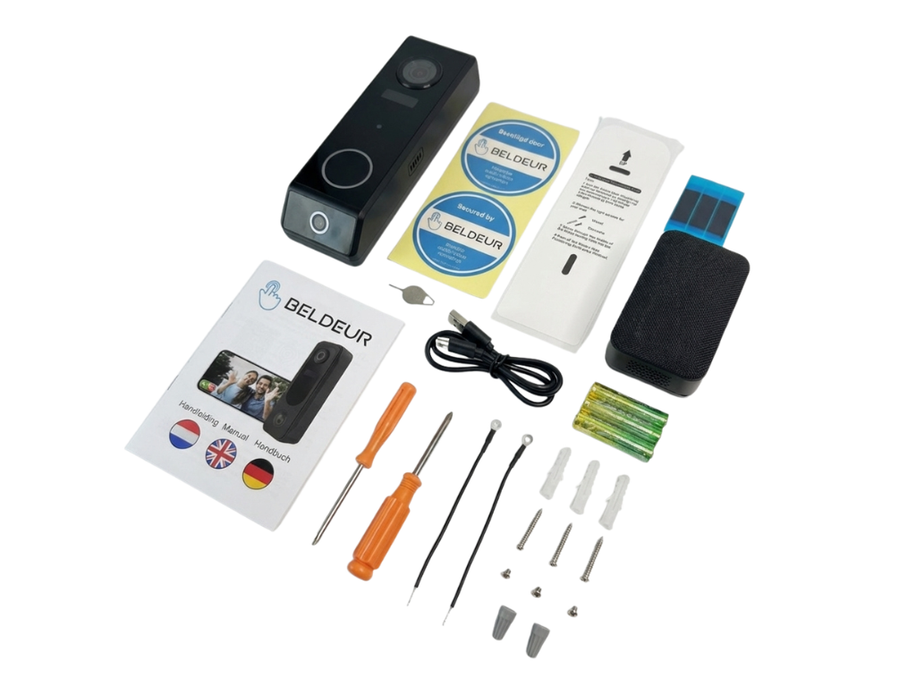 De deurbel is extra beveiligd tegen diefstal met een speciale beveiligingsschroef die aan de bovenkant van de deurbel is geplaatst. Deze schroef voorkomt dat de deurbel eenvoudig kan worden verwijderd. Om de deurbel toch los te halen, wordt er een speciale tool meegeleverd waarmee je de schroef veilig en eenvoudig kunt losdraaien. Dit zorgt voor maximale bescherming en gebruiksgemak.