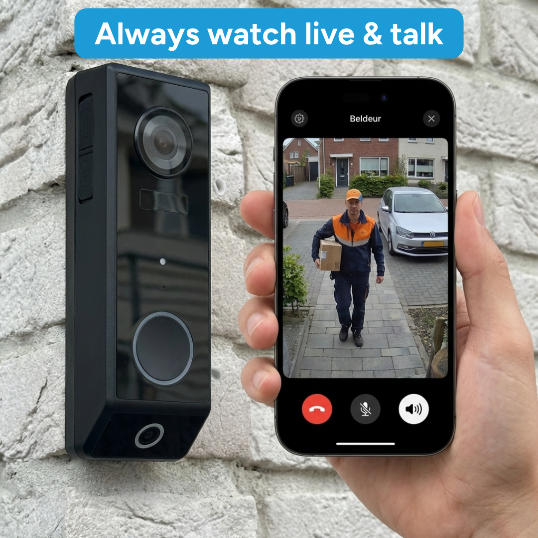 • Zie direct wie er voor je deur staat, ook als je niet thuis bent